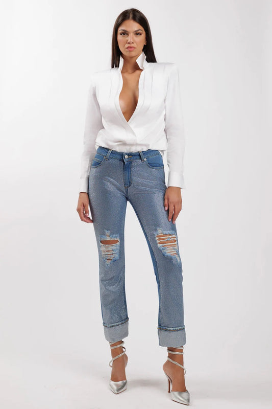 SILENCE LIMITED-Denim piegoni con strass